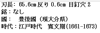 - Длина клинка (Hacho): 65,6 см (2.16 Shaku)